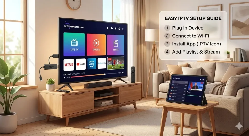 High-quality IPTV can be accessed by subscribing to licensed UK IPTV providers that offer HD and 4K streaming on Smart TVs, Android, and iOS devices.